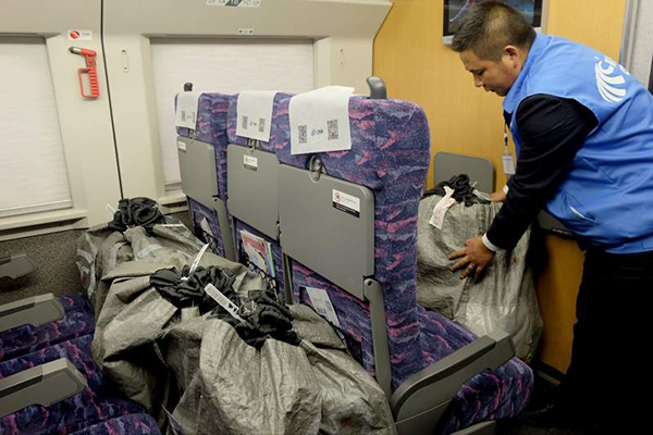 四川新闻网记者从成都铁路局了解到,11月11日当天,四川成都有200余件总重约3500公斤的网购商品通过搭乘成都东站始发的动车组前往江浙沪地区,同样当天晚上从广州、上海等地到达成都的电商货品也有200余件近4000公斤。